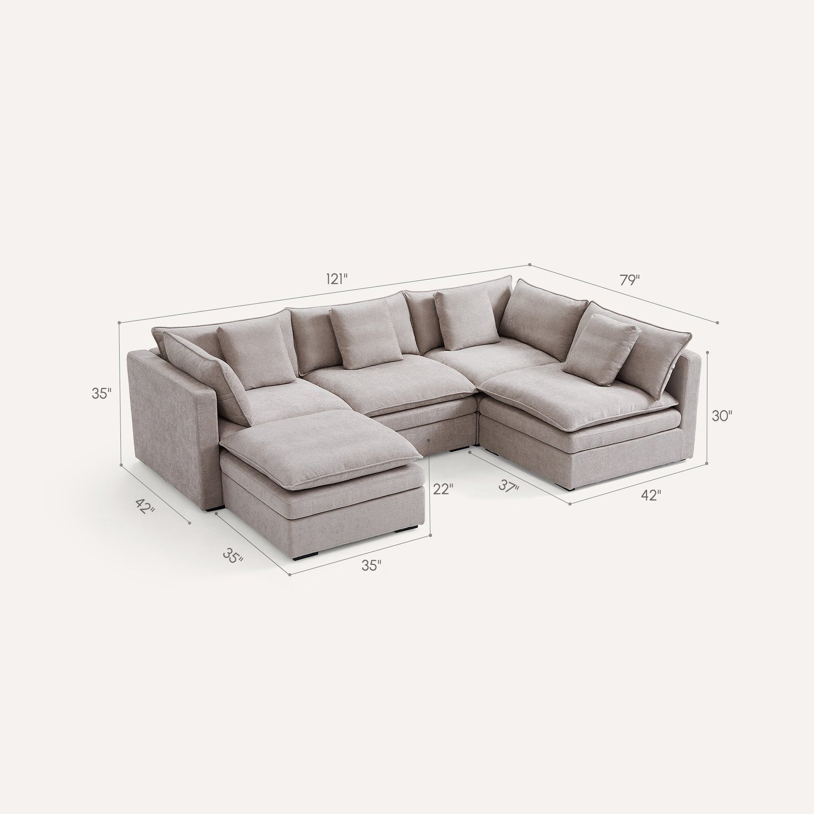 Burger 5-Piece Modular 121″ Khaki U-Sectional With Ottoman