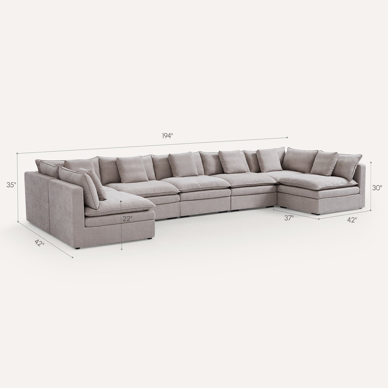 Burger 7-Piece Modular 194″ Khaki U-Sectional