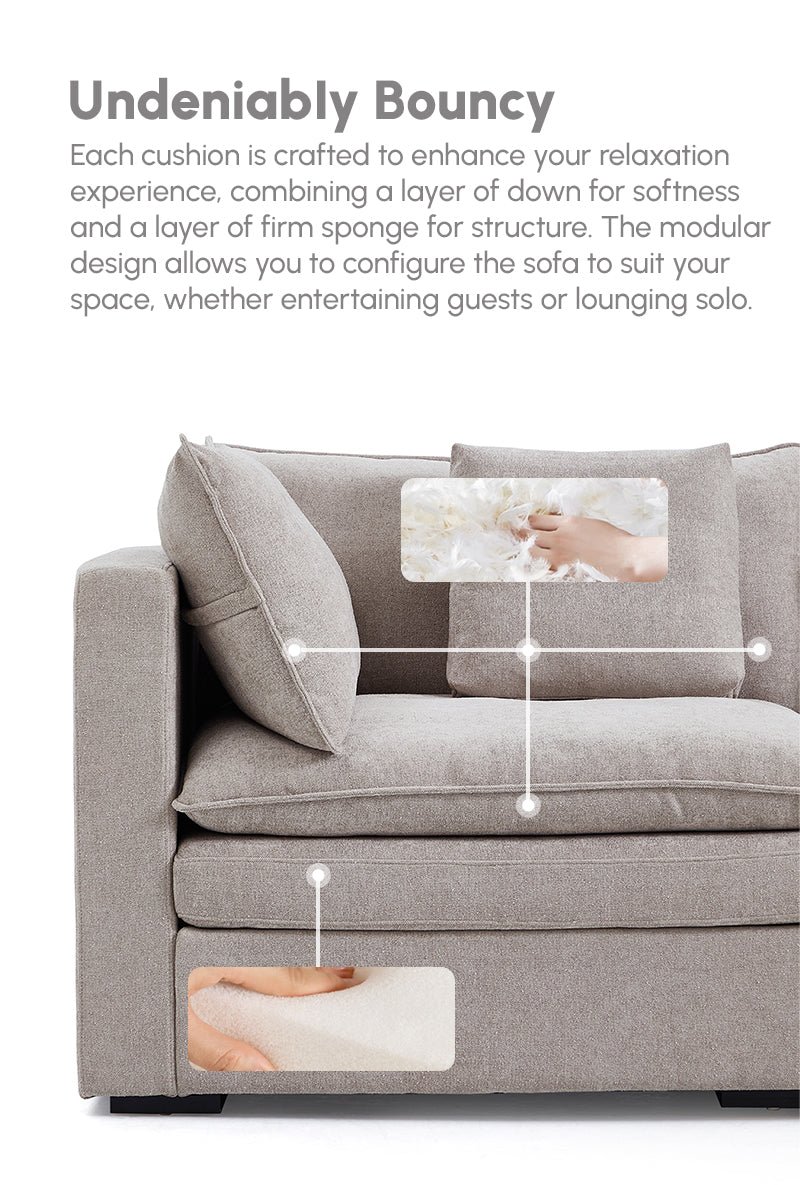 Elevate your living space with the Burger Modular Sofa, designed to adapt seamlessly to your lifestyle. Each seat features a dual-layered cushion system, combining plush feather-filled pads for softness and supportive high-density foam for firmness. Simply rearrange the cushions to achieve your preferred comfort level, from cloud-like softness to firm support. Enjoy deep seating at 36 inches, providing ample room to stretch out and relax. Plus, our removable, machine-washable covers ensure easy maintenance and a fresh look year-round. Whether you’re furnishing a studio apartment or a spacious family room, the Burger Modular Sofa offers endless configuration options to suit your unique space and style